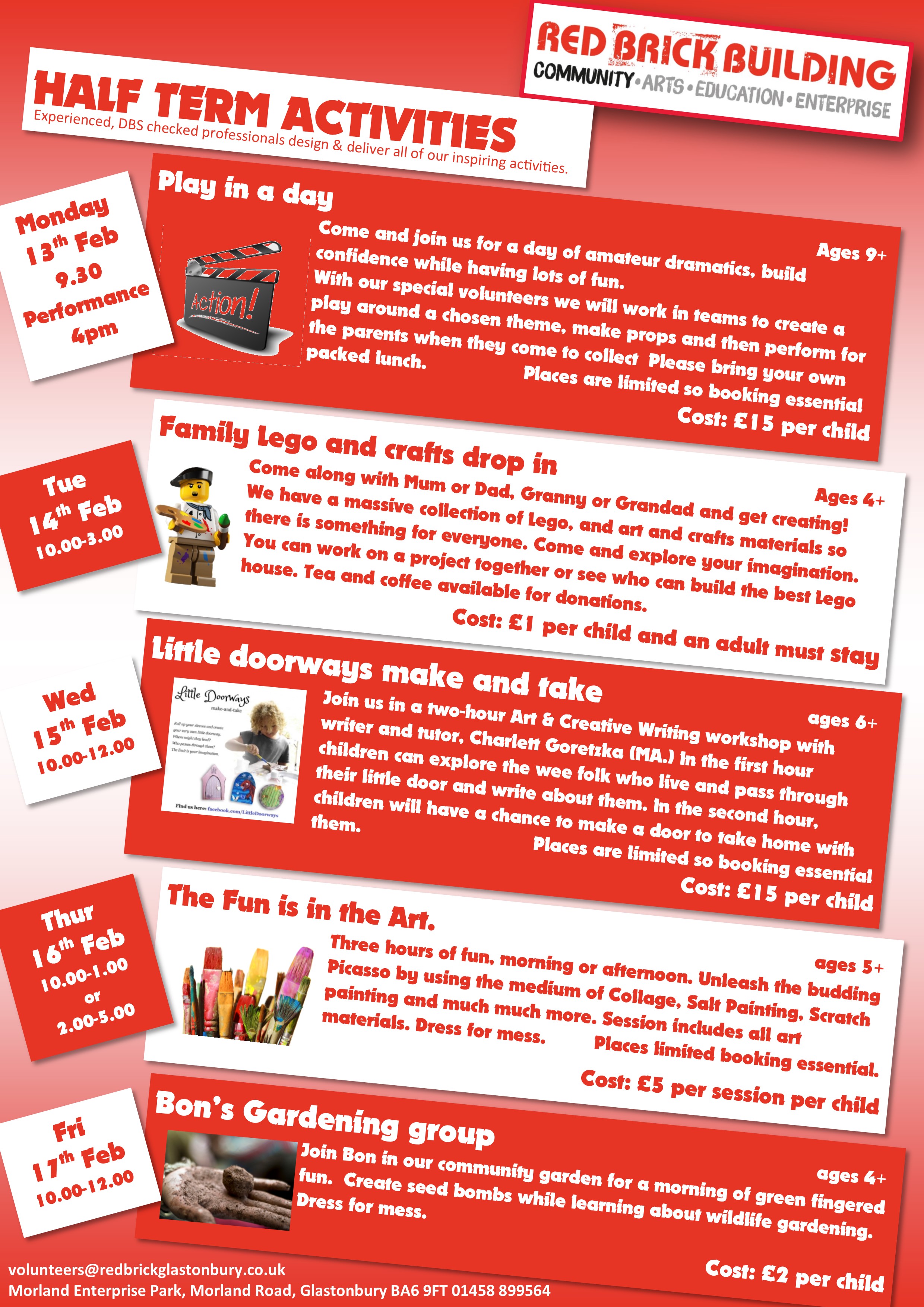 Sessions take place 10am till 1pm or 2pm till 5pm