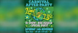 15th October 2019 Back to all posts WHAT: Lime-of-your-Life-Carnival-After-Party-2019-Banner-Image Share: