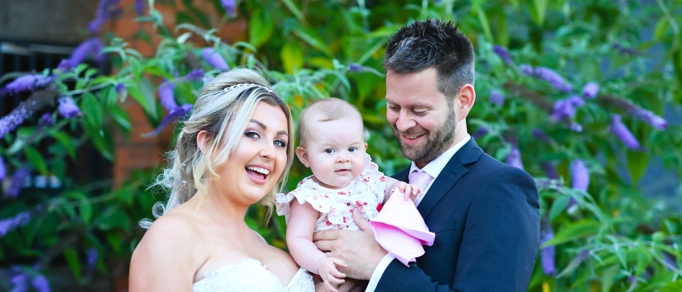 Bride & Groom & Baby, Garden- Banner Image